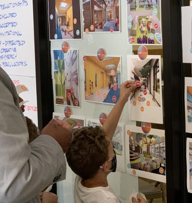 Our approach is highly collaborative, working side-by-side with clients to refine their ideas and dreams for each space. Whether it’s selecting themes for classrooms or adjusting designs to fit budget constraints, we help clients prioritize what’s most important. Our proprietary tools like Educational Guidebook and PlanVue, an AI planning software, help capture, document, and codify the vision as it applies to space—ultimately creating a blueprint for how to achieve instructional and academic goals within a given facility.