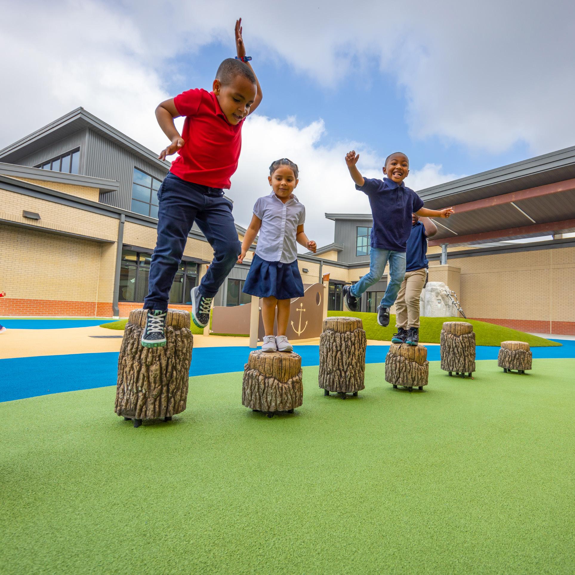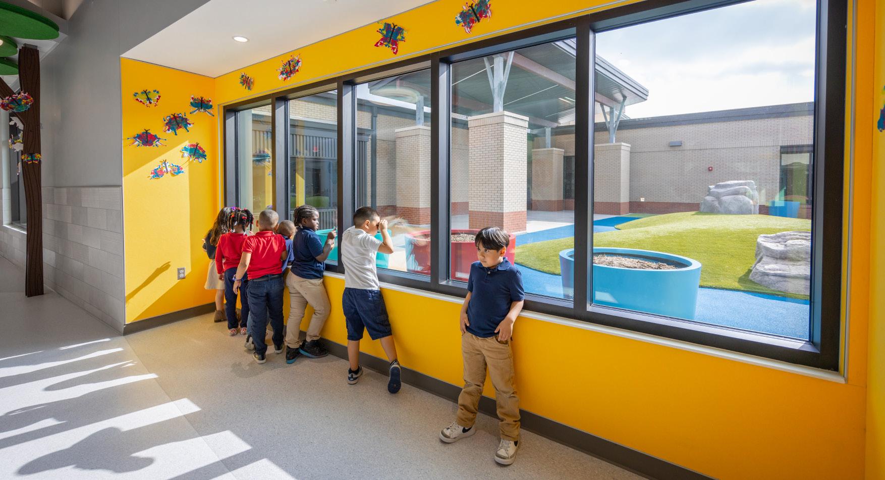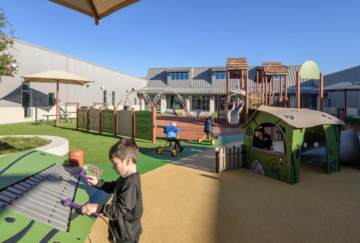 Outside of the building, we put great care and thought into creating a safe, enjoyable, and warm atmosphere. From drop-off and pickup traffic patterns to outdoor learning areas and playgrounds, we consider the efficiency and functionality of each site to ensure safe and manageable daily interaction. Children love the outdoors, and research shows that connection to nature and outdoor play improves their physical and mental health. Natural light is also a primary focus for the architectural design, creating a holistic relationship between building and site.
