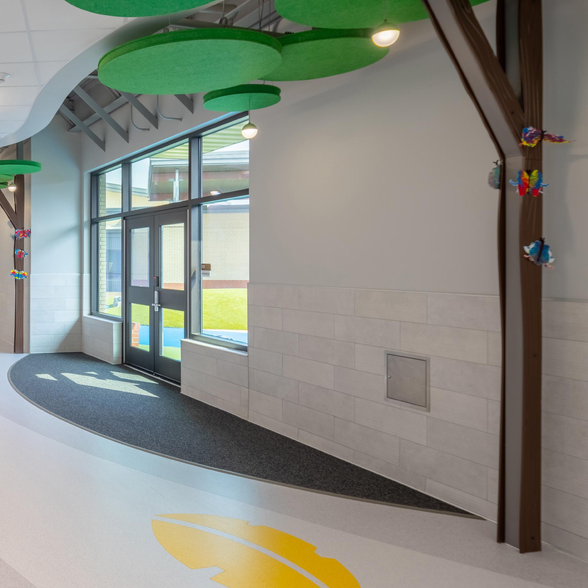 Making students feel welcome is key to designing immersive early learning interiors. For many young learners, these facilities are their first time away from home. Every detail expresses to students that their school was made for them to experience. Our interiors are more than just functional—we design with intentionality that reassures and invites exploration. This understanding includes everything from softening the acoustics in high-volume areas, building sensory-rich experiences, or creating simple wayfinding systems for young minds.