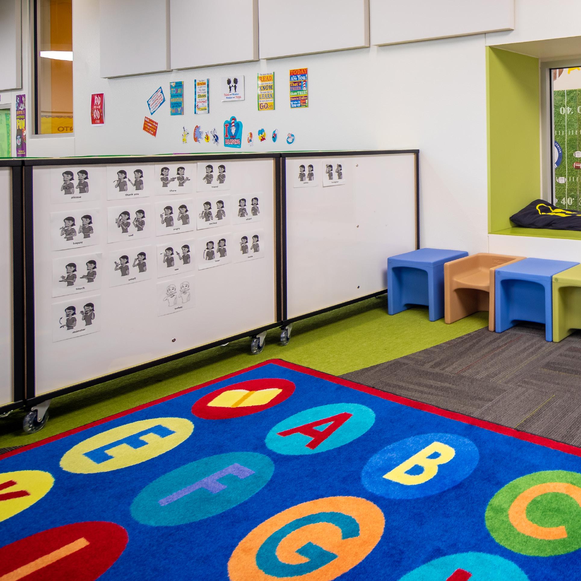 Our expertise extends beyond classrooms to include community spaces, SPED classrooms, and daycare centers. We design interactive environments with sensory furniture pieces that encourage students to touch, feel, and engage with their surroundings. With a focus on color, flexibility, and the diverse needs of young learners, we create spaces that enhance learning and reflect the unique identity of each campus.