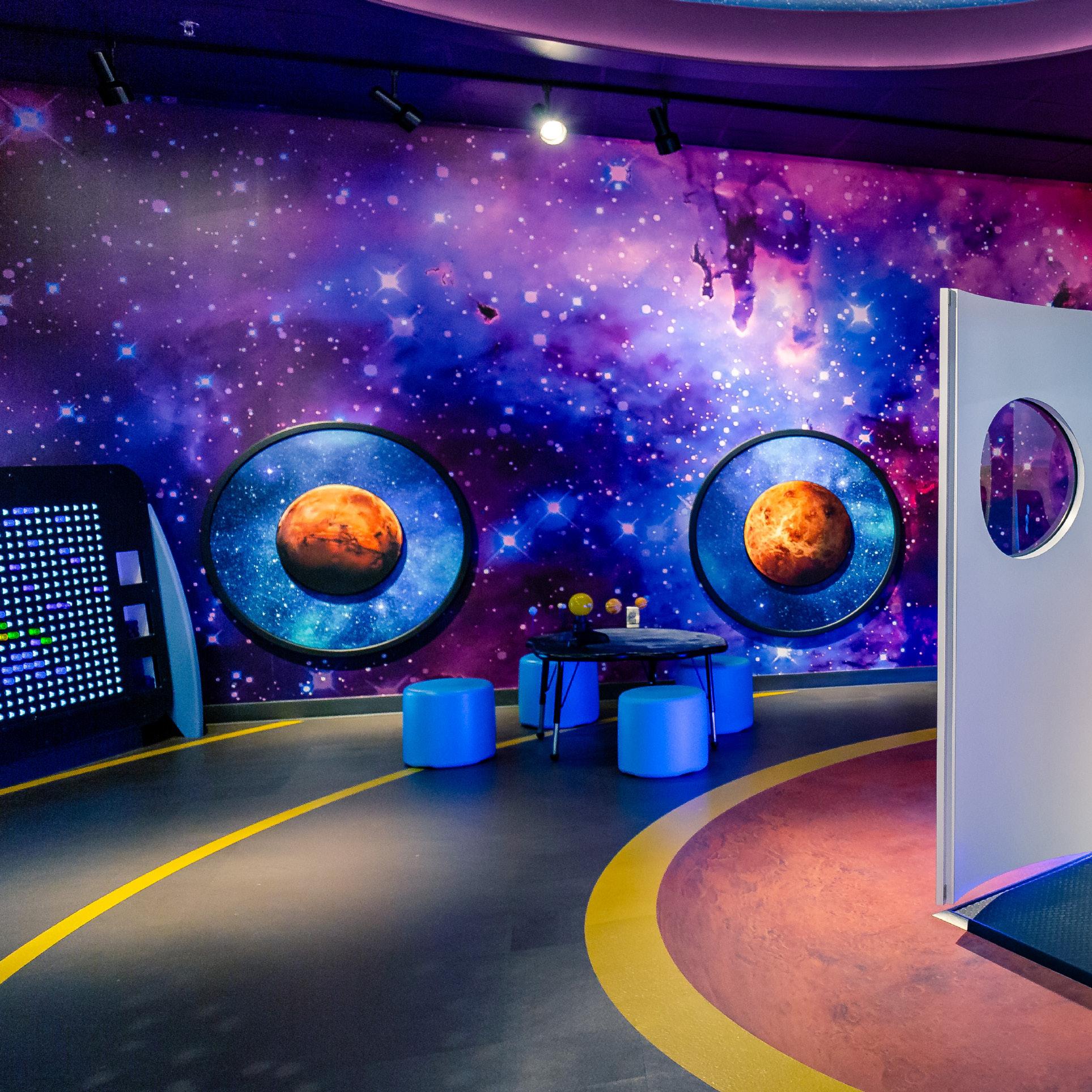Our approach is grounded in collaboration and shaped by each school’s vision, curriculum, and unique character. We tailor graphic solutions to bring cohesion, context, and clarity to everything. Whether we’re working with experiential rooms or helping develop brand systems, we create layered environments where students can experience the world. Environmental Graphics in early learning are a foundational piece of what makes experiential spaces feel like vibrant, immersive worlds to get lost in.