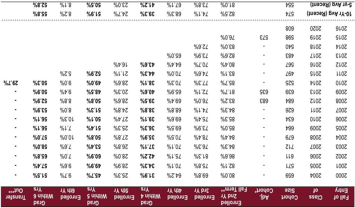 Retention Rate – A measure of the rate at which students persist in their educational program at an institution, expressed as a percentage. This is calculated by determining the percentage of the first-time full-time cohort from a specified fall semester who are again enrolled in the following fall semester.