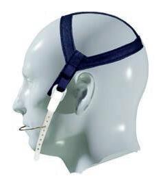The forehead support (1) and chin rest (2) have foam protection, which increases comfort and encourages the patient to use.