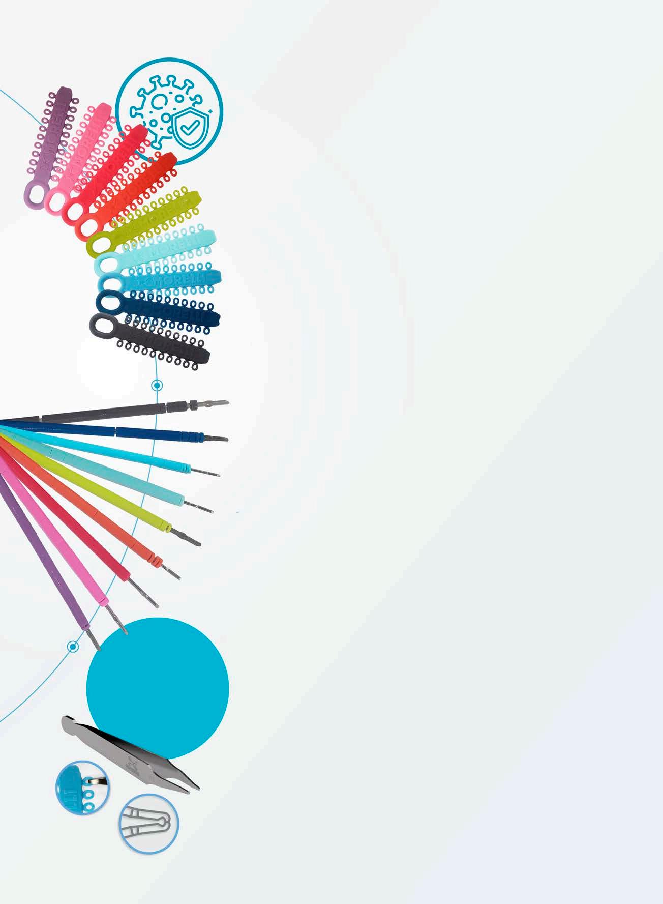 Stainless steel tips with shapes that favor the adaptation of orthodontic bands. Made of gray nylon, they resist the pressure of bites and the temperatures of autoclave sterilization.