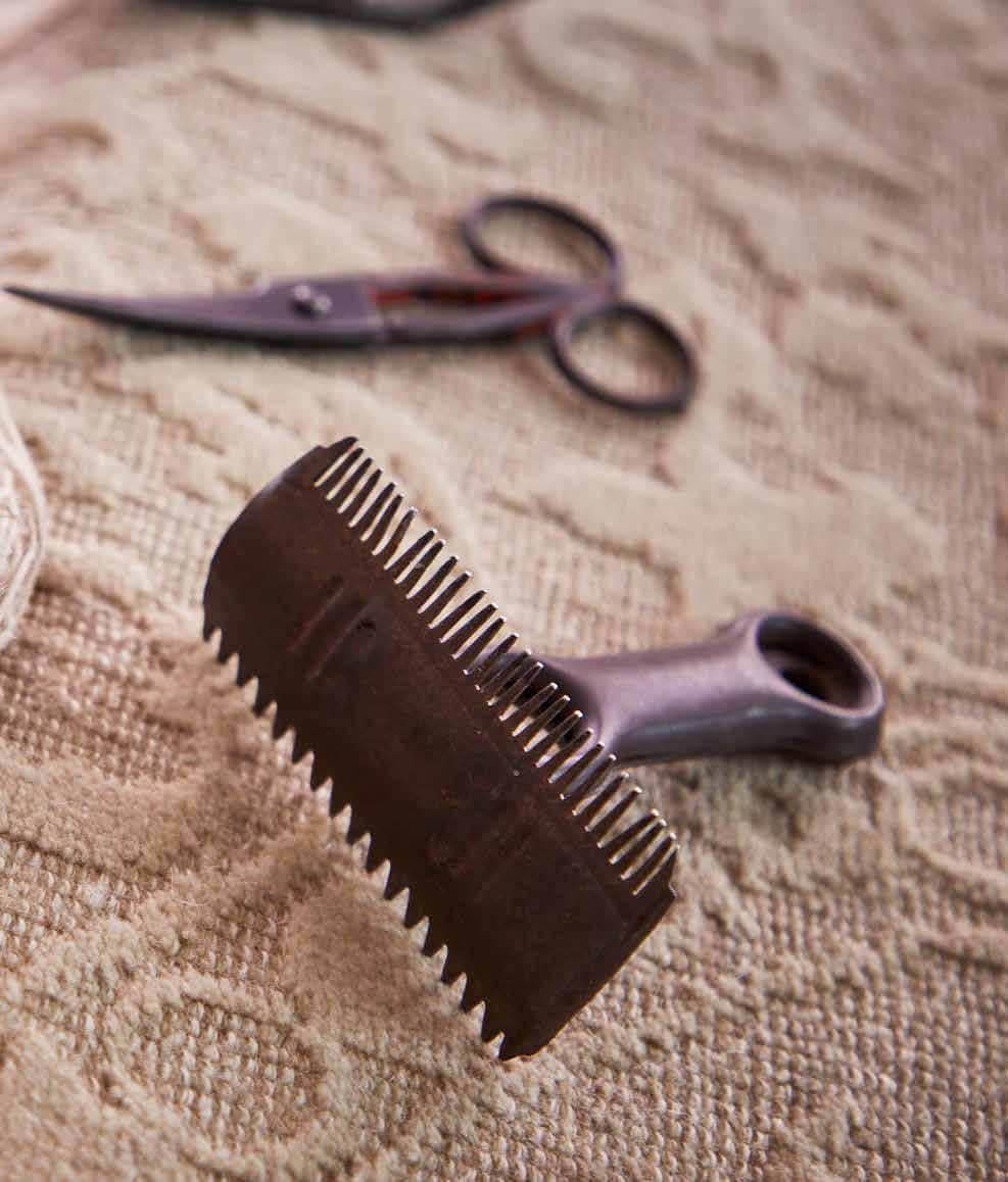 rifinitura per la perfezione del prodotto è cruciale la rifinitura: con la bruciatura dei peli nel retro del tappeto, il lavaggio in acque depurate, la battitura, l’esame dei bordi, l’inchiodatura e la messa in trazione.