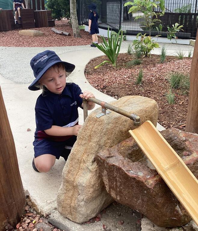 With a strong ecology of play, our outside learning spaces carefully crafted by Wearthy, Early Years specialist, allowed the children to immerse themselves in nature. With natural materials, swirling pathways and climbing vegetation creating secluded play spaces, the children were invited to delve deeper into the open-ended play spaces. As they ventured outside for the very first time, they were met with subtle invitations to engage in sensory play, to create with others and to challenge themselves with the offering of risky play, along with spaces where they could ‘just be’ and soak up the owe and wonder of their new learning space. Standing prominent with pose, the Beacon structure inspired by an early pile lighthouse, the Moreton Bay Pile Light, provided the children with multiple climbing challenges, along with pockets of spaces to hide and transform.