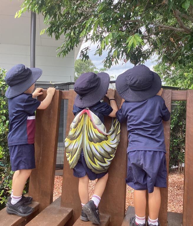 The outside environment quickly became a haven for bug and insect hunts. The children looked under rocks and leaves and on the trunks of different trees, carefully observing and sharing their wonderings and theories, “I think that spider is making a web, how does it do that?” The discovery of a grasshopper initiated new vocabulary, as children noticed that the grasshopper was difficult to see when on green leaves, “it’s camouflaged”. The children discovered something interesting hanging off a leaf on a tree, “it’s like twirly and there is a pointy thing at the bottom. I can see a little hole in there. I can see some brown at the bottom”. “It’s a cocoon … a chrysalis,” sharing their prior knowledge. The children excitedly went on an adventure, looking under leaves high and low for a caterpillar. As they searched in the grass trees, they noticed something very special flying past, “a butterfly”, and following it they wondered, “Is it going to lay more eggs?”