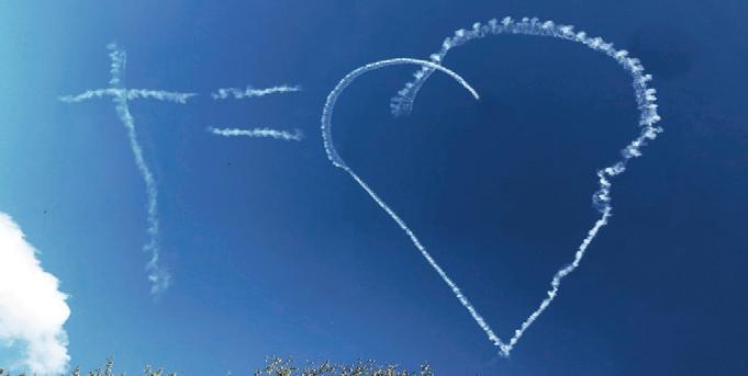 The annual walk of witness took place in the town on Good Friday preceded by a special unity service in the Cathedral with over 500 people attending, and an open air service in the Market Square. Led by a sole drummer, the cross was carried by a Southgate Church team, led by Akachukwu Lekwauwa, across Angel Hill and up Abbeygate Street to the town centre, with a huge procession following behind. Our own Helen Moore was one of the co-organisers of this poignant and solemn event focussing on Christ’s crucifixion and death on the cross. Later in the afternoon, to the town the image below was drawn in the sky above Bury neatly encapsulating the story of Easter. And the whole event was comprehensively covered by BBC Look East later in the day.