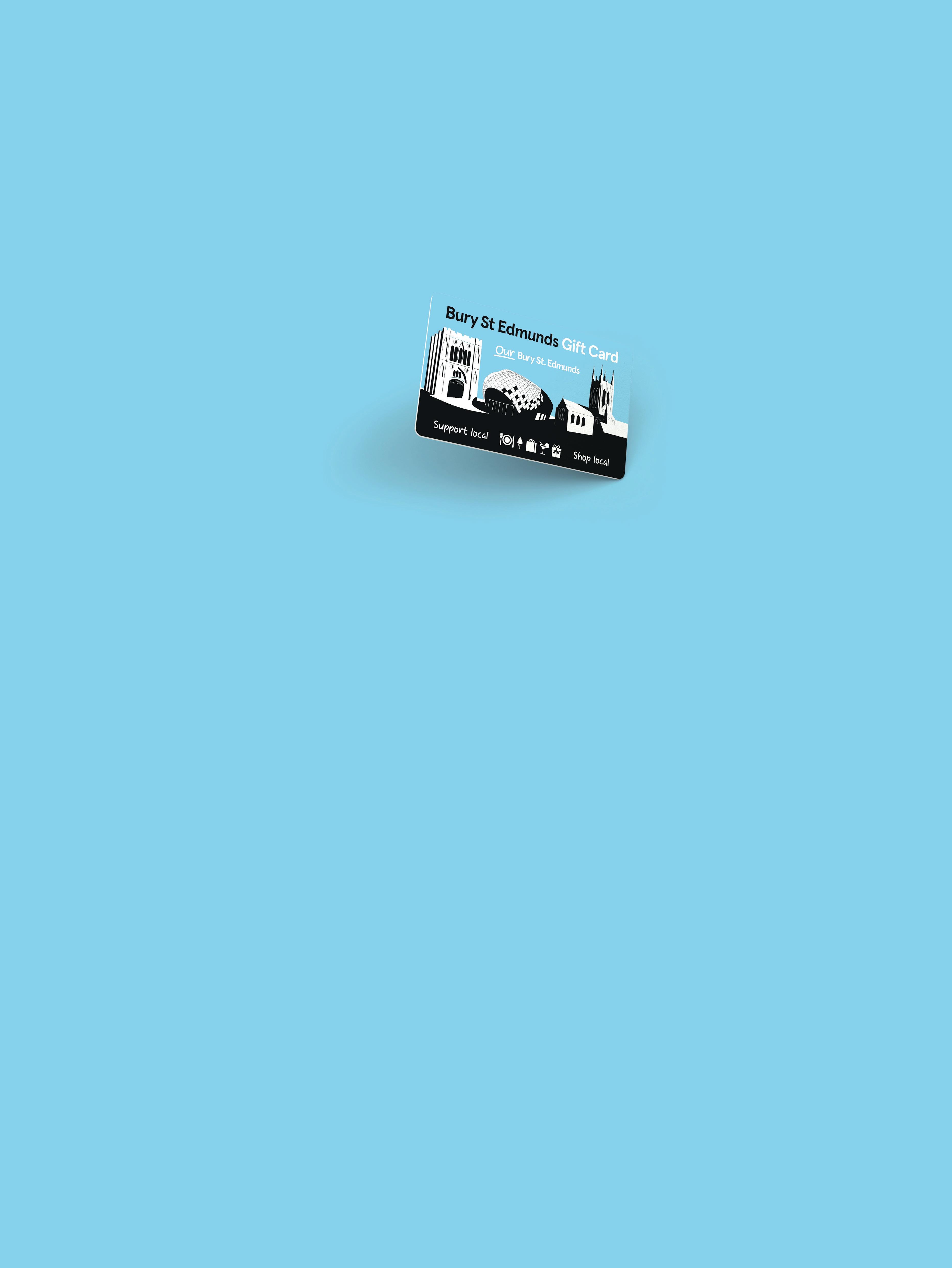 helps to support local businesses by keeping the spend local Brought to you by Bury St Edmunds Gift Card To find out where you can purchase or use this gift card please visit: www.ourburystedmunds.com Support local Shop local