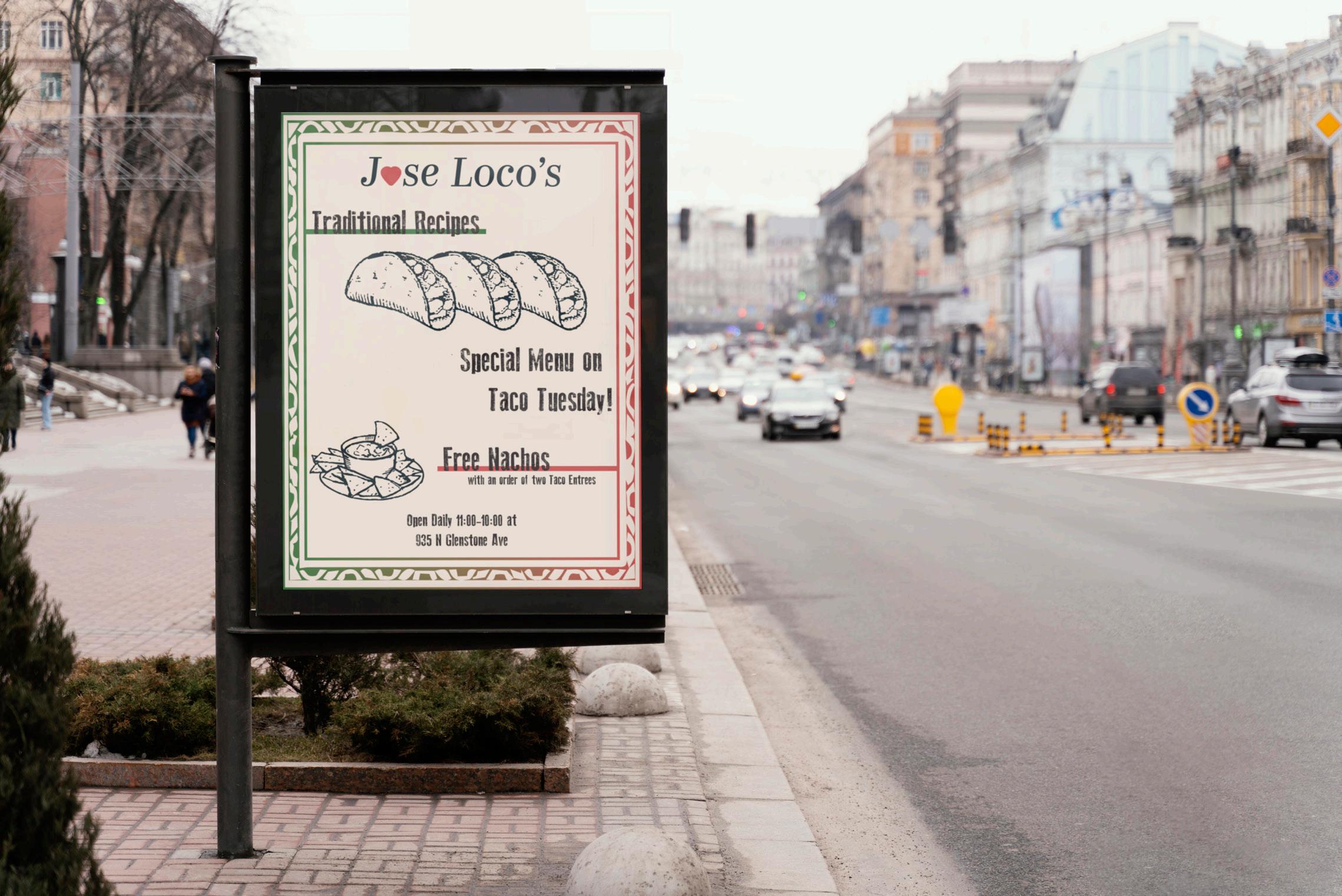 Likewise, the choice of typeface contributes significantly to the brand’s personality and visual appeal. Typeface not only affects readability but also conveys a subtle message about the brand’s character and values. In the case of Jose Loco’s, Rockwell font was chosen for its bold, modern, and confident appearance, aligning perfectly with the restaurant’s aim to portray a contemporary yet authentic image.