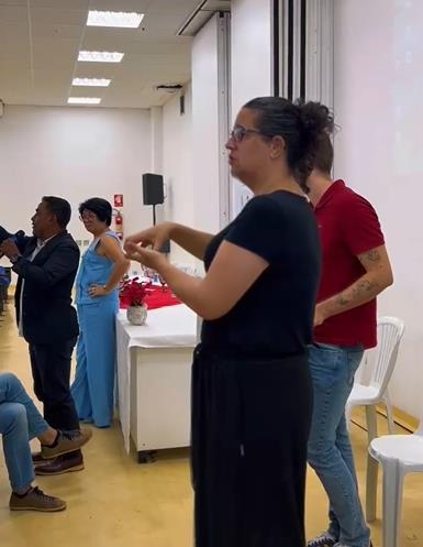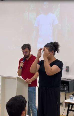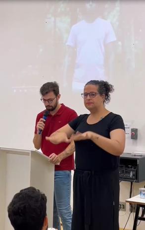 Ação de extensão intitulada “Trajetórias e militâncias junto à Comunidade Surda” promovido pela UFRN, houve interpretação Português para Libras e vice-versa.