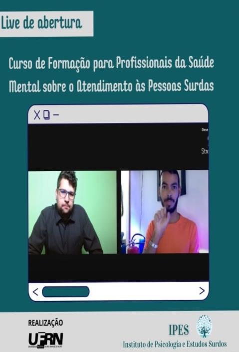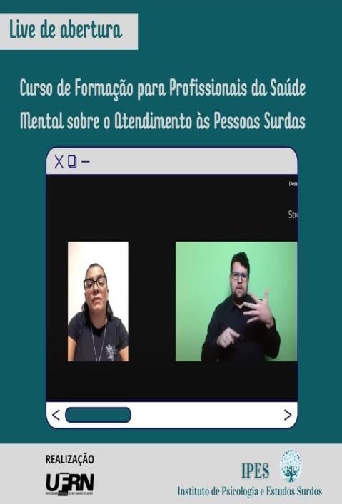 Aula inaugural do Curso de Formação para Profissionais da Saúde Mental sobre o Atendimento às Pessoas Surdas oferecido pelo IPES/UFRN, houve interpretação Português para Libras e vice-versa