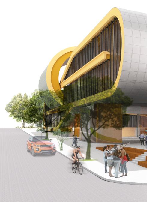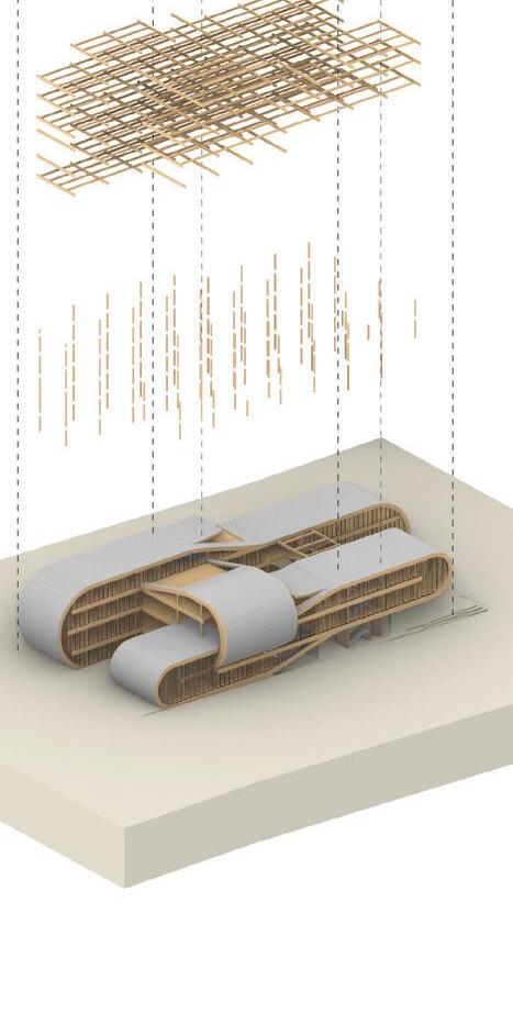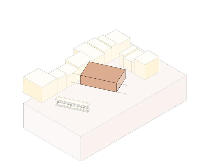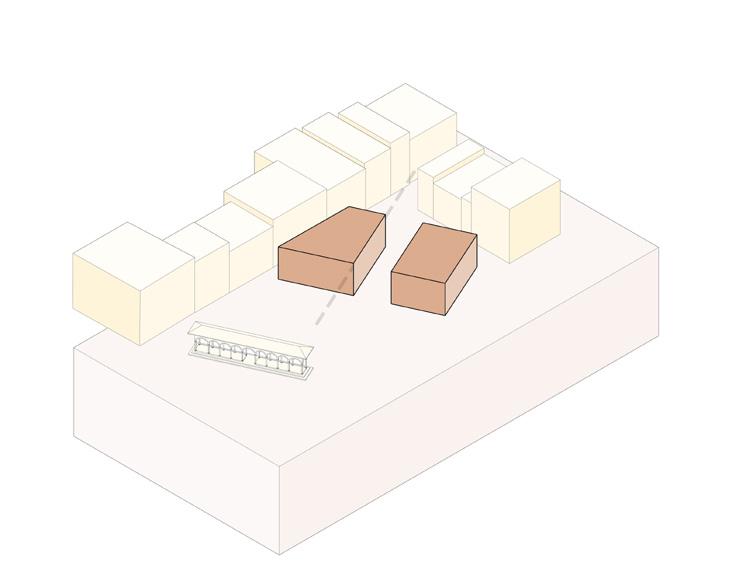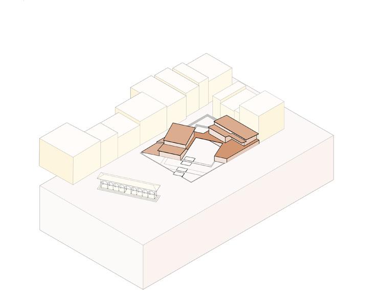 This diagram illustrates the formal moves relating to topography, site context, and concept. It is representative of a handshake, showing the convergence of the surrounding districts.