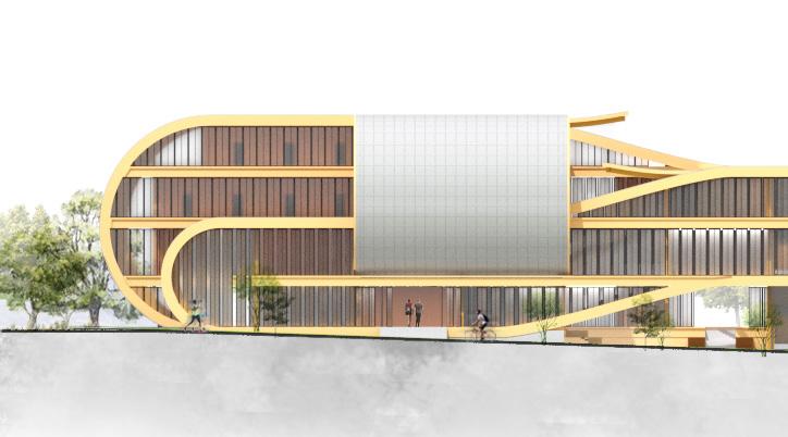 The building is also heavily influenced by daylighting, passive systems/orientation, views (towards the mountains, El Pueblo, etc.), and the nearby urban fabric.