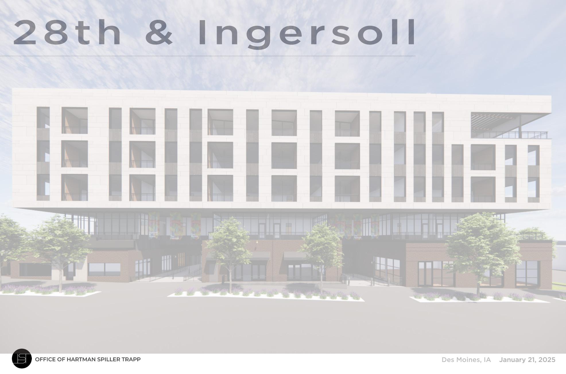 28TH & INGERSOLL IS A MIXED-USE APARTMENT COMPLEX THAT REVITALIZES A GROWING DISTRICT BY REIMAGINING EXISTING STOREFRONTS. THE PROJECT BLENDS MODERN LIVINGSPACES WITH RENOVATED COMMERCIAL AREA, CREATING A VIBRANT COMMUNITY HUB. DESIGNED FOR EMERGING PROFESSIONALS, IT OFFERS SUSTAINABLE HOUSING WHILE SUPPORTING LOCAL BUISNESSES AND ENHANCING THE NEIGHBORHOOD’S CHARACTER.