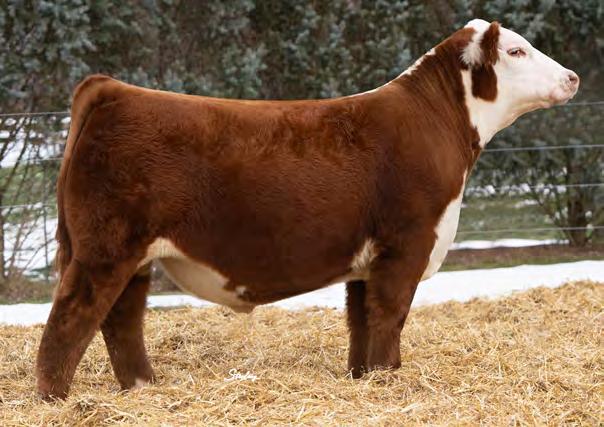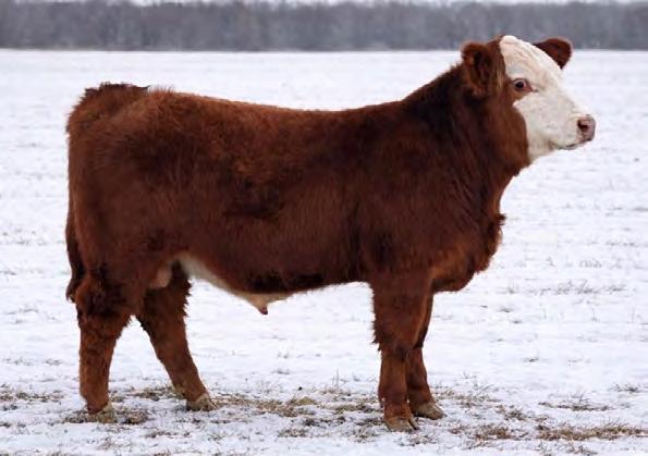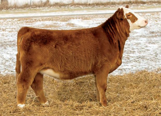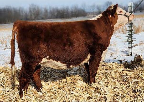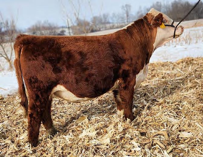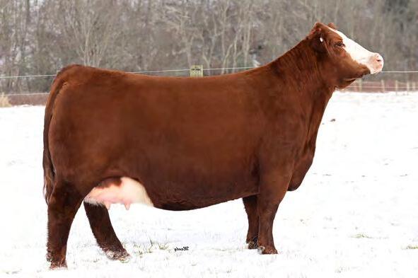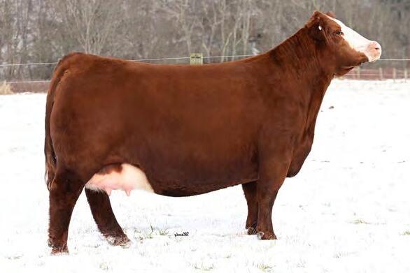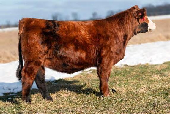 An own daughter of Hilb Miss Versace E57C, the dynamic red head from Hilbrands! This young lady is easy going, easy keeping and easy to fall in love with. Her sire LLSF Dauntless is just picking up steam as a producer of great females. If red baldy heifers like this one don't get your heart going then nothing will.