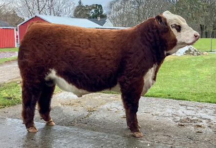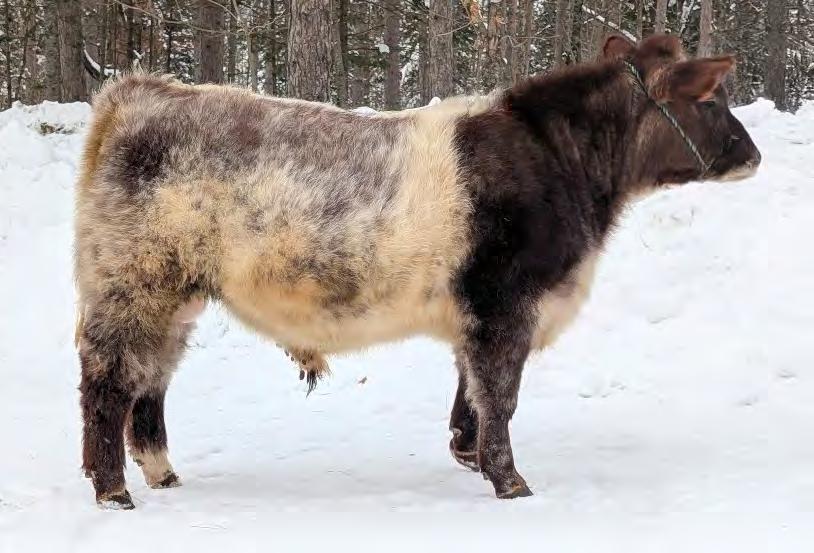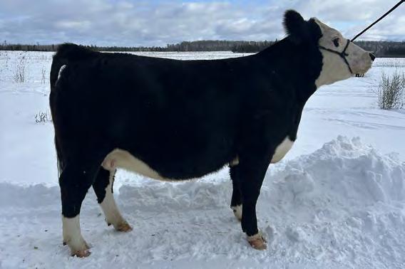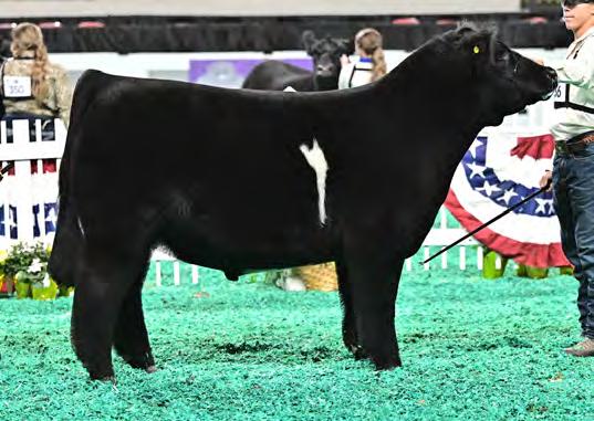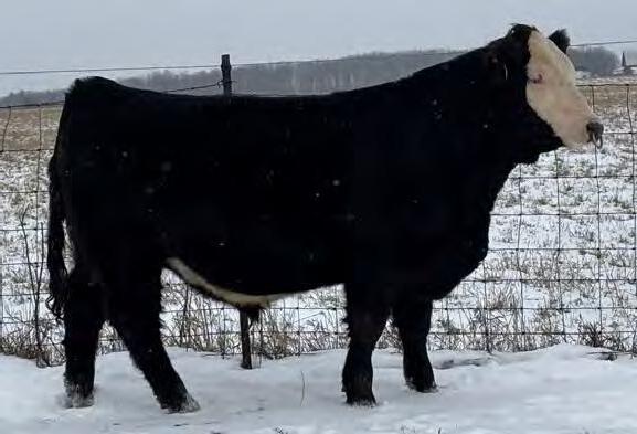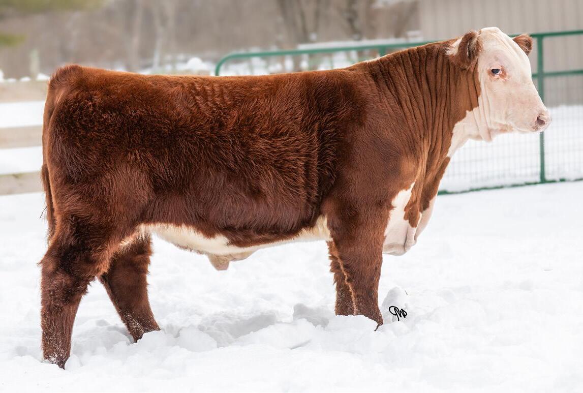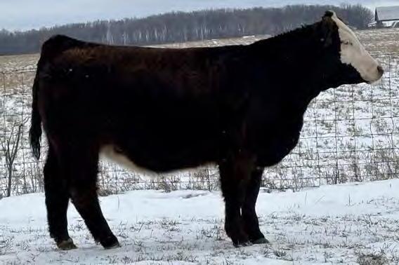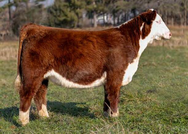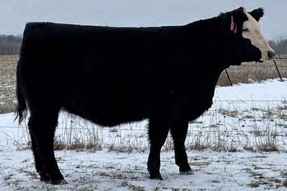 This striking baldy heifer is the perfect blend of femininity, eye appeal, and real world muscle. Long fronted and smooth made , she carries herself with the kind of elegance that turns heads, yet she backs it up with a powerful hip, bold rib, and the structure correctness needed for long term productivity. Attractive from every angle and built with the kind of balance that never goes out of style, she's a stand out female with the look of a future brood cow and the mass to raise heavyweight calves.