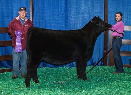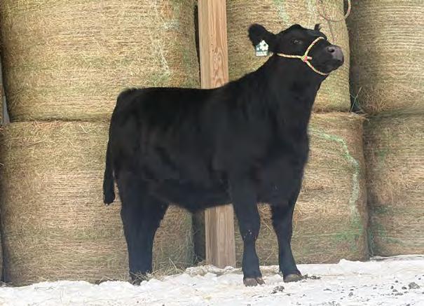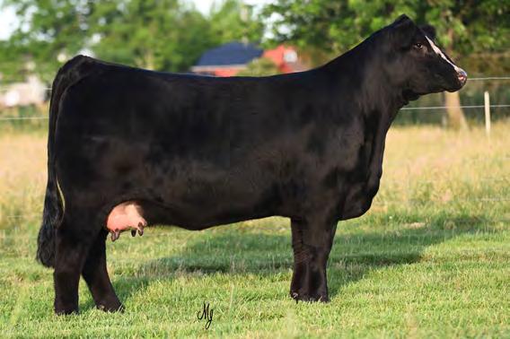 Tulula is bred to the calving ease Angus bull KG Justified for her first calf. She is a One Eyed Jack out of a Cowboy Cut and can be bred for show or commercial to make beautiful heifers or steers. Her mother is a beautifully uttered, deep bodied brood cow. Her pedigree allows her to be bred for show or make great replacements. Tulula has enough chrome to make beautiful show steers and will be a great addition to any herd.