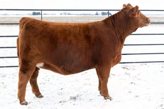 Noel is the full sister to our class winning and 10th overall bred and owned heifer at the 2025 Simmental Jr. Classic. This red heifer has as more rib and power than any purebred we have ever raised. She is wide based, big boned and has a smooth tailhead. You will have many options in mating this heifer.