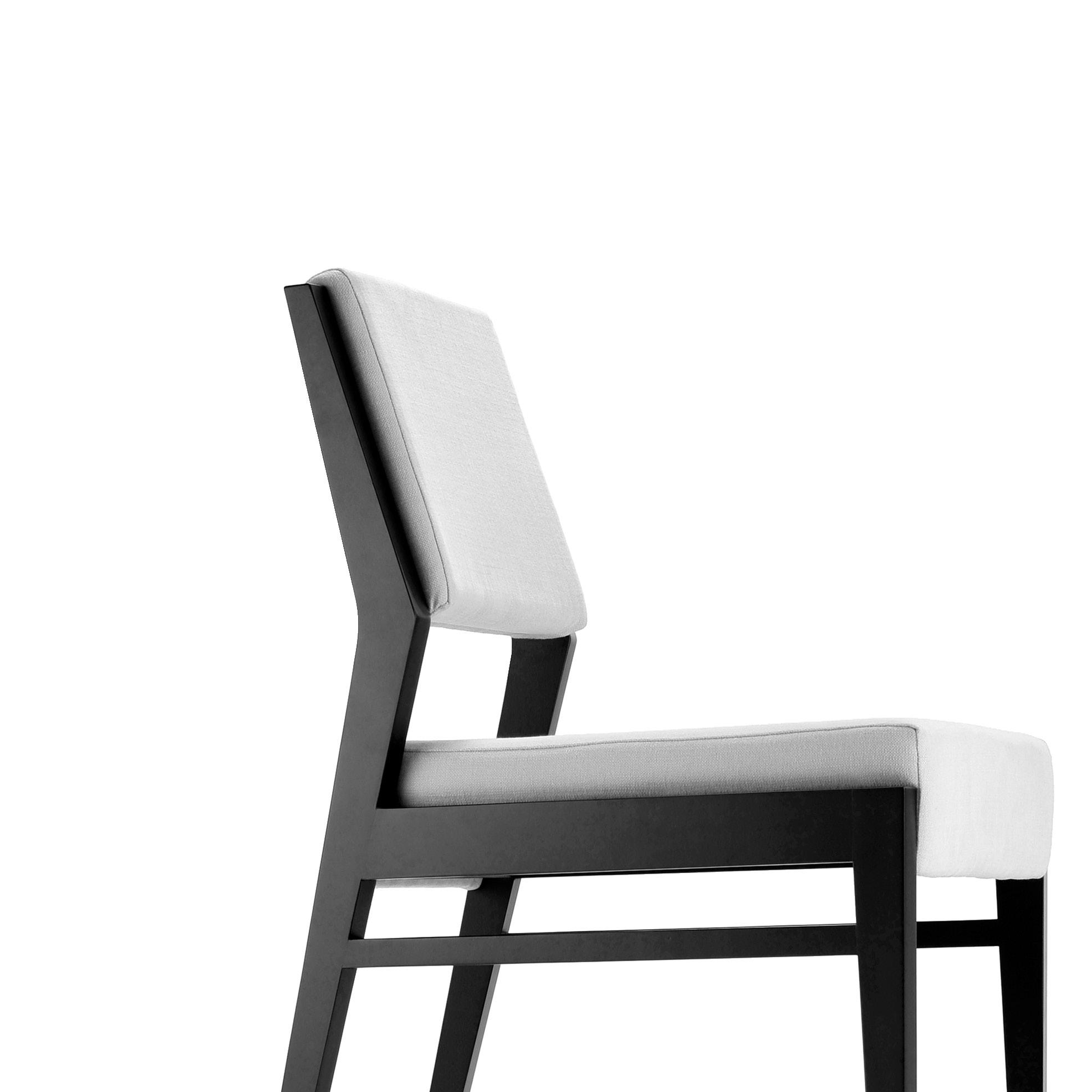 Designed by Katerina Zachariades. The Paris collection has been inspired by 1940’s design and the traditional classic detailing of the period. The collection has then been developed into three dining/ meeting chairs and bar stools, with the same fully upholstered seat and different back treatments. A traditional wave shaped top edge, a handle shaped showwood top detail and a large curved back gives each of the three chairs a distinctive eclectic character.