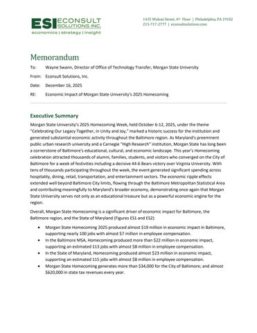 RE: Economic Impact of Morgan State University's 2025 Homecoming Date: December 16, 2025