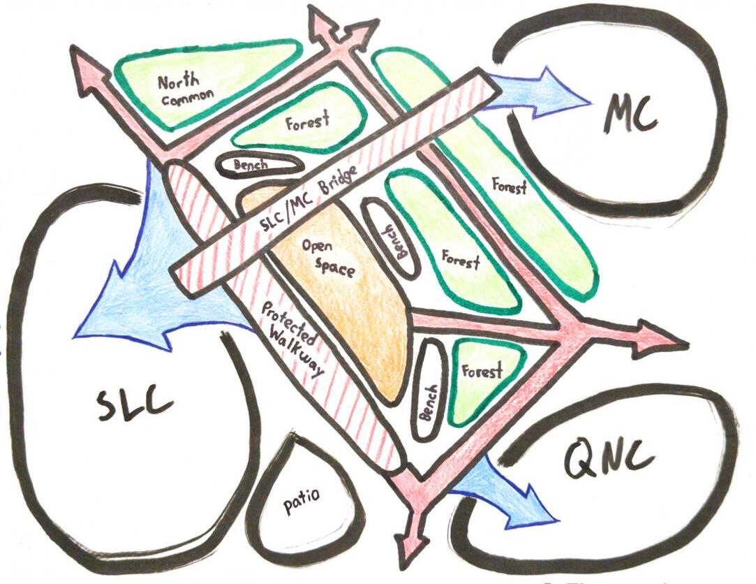 The student center recently was renovated. What should have been an upgrade had bulldozed old trees and outdoor seating areas. A sad, dry, and patchy lawn was left. So we got the space, lets bring back what made the campus pleasent and make it even better.