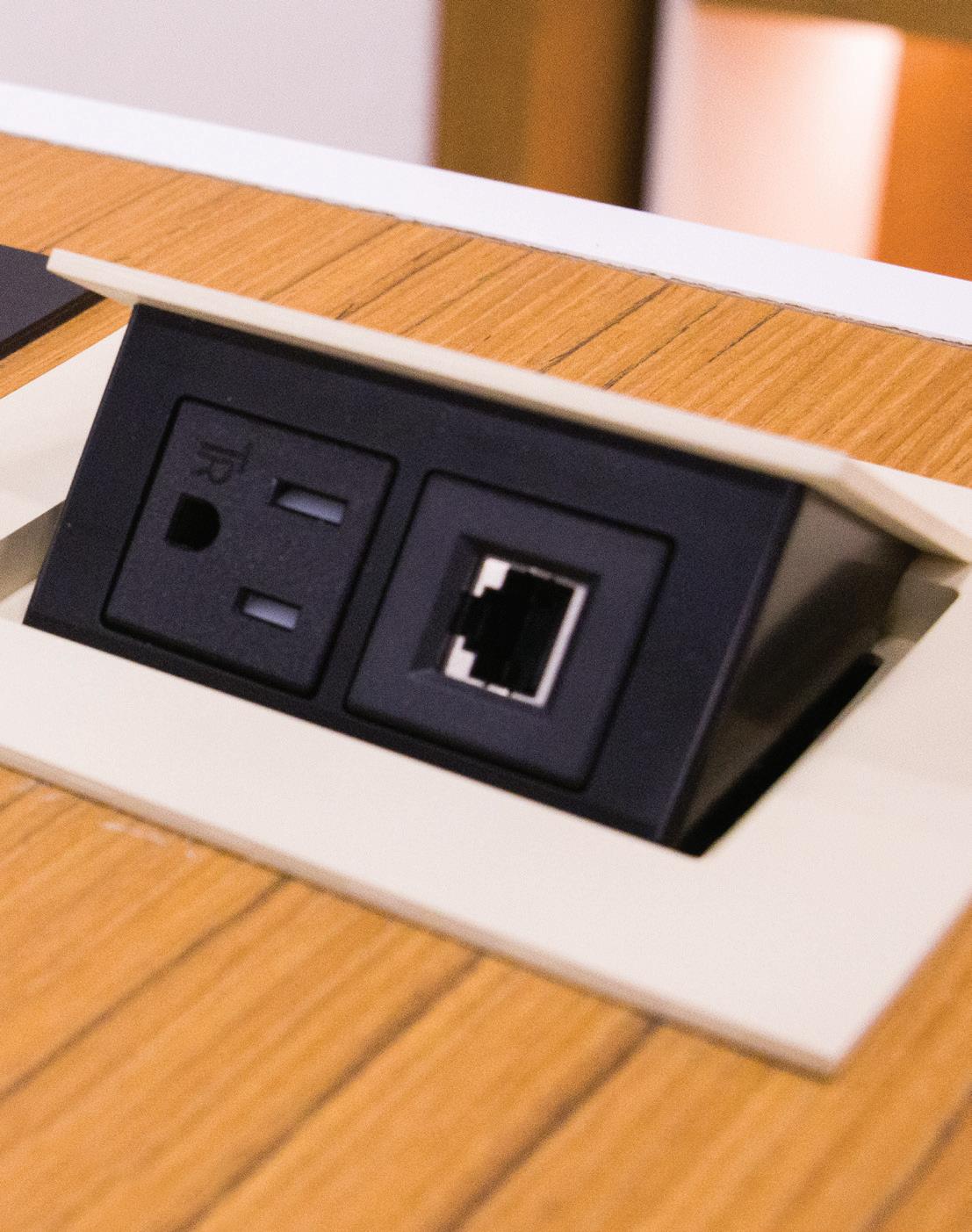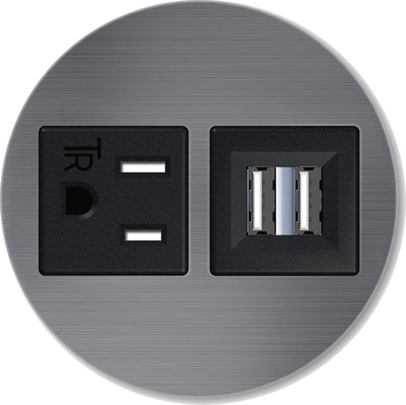 The Flip-Up Power unit brings a classic elegant design to the pop-up market. These sleek units are available in two-or-three-module combination options, with our standard 26 finishes. Simply press down on the top of the unit to reveal the power modules—an intuitive design for any guest.