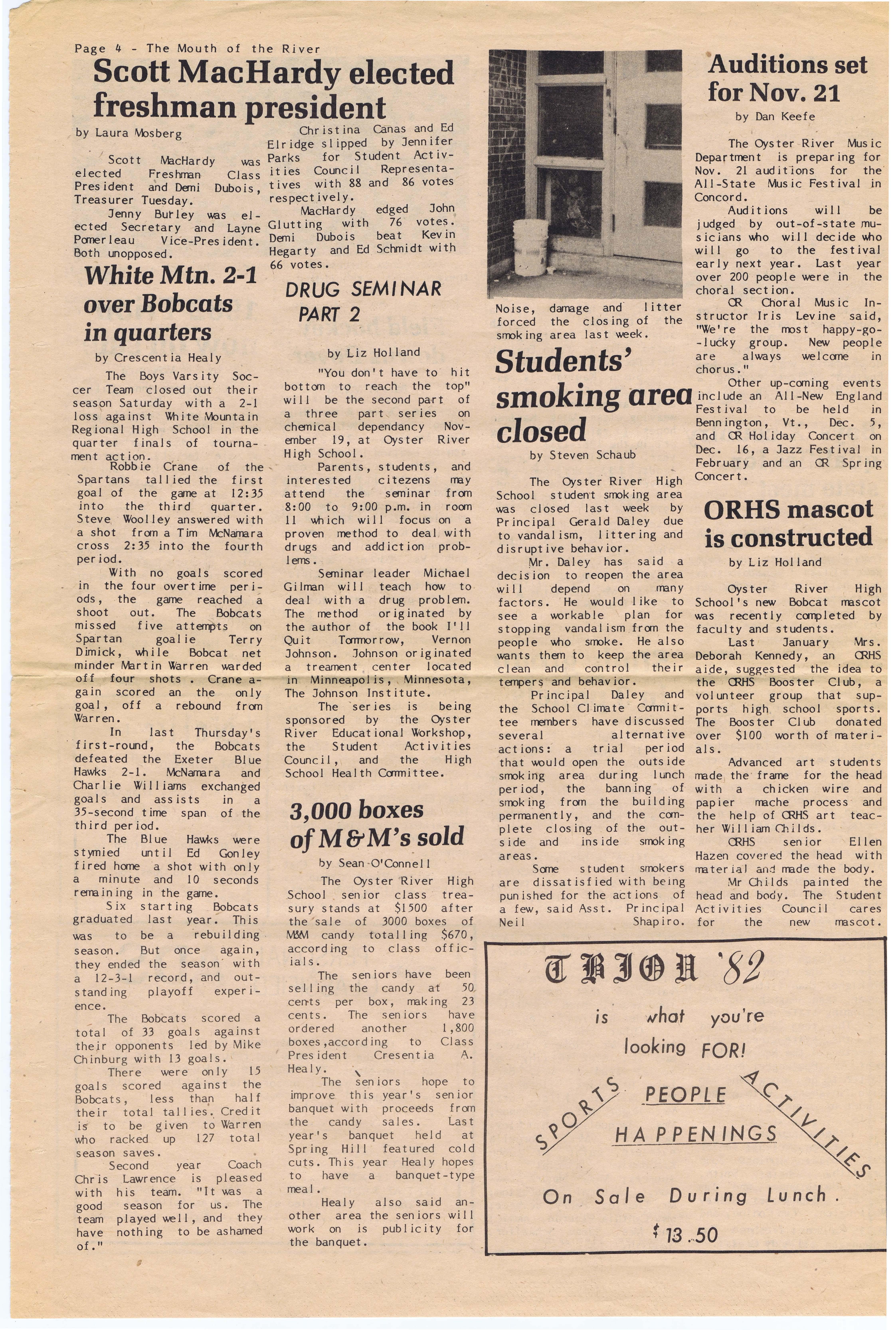 The 1\1\outh of the River Oyster River High School _ Coe Drive Durham, N.H. 03824