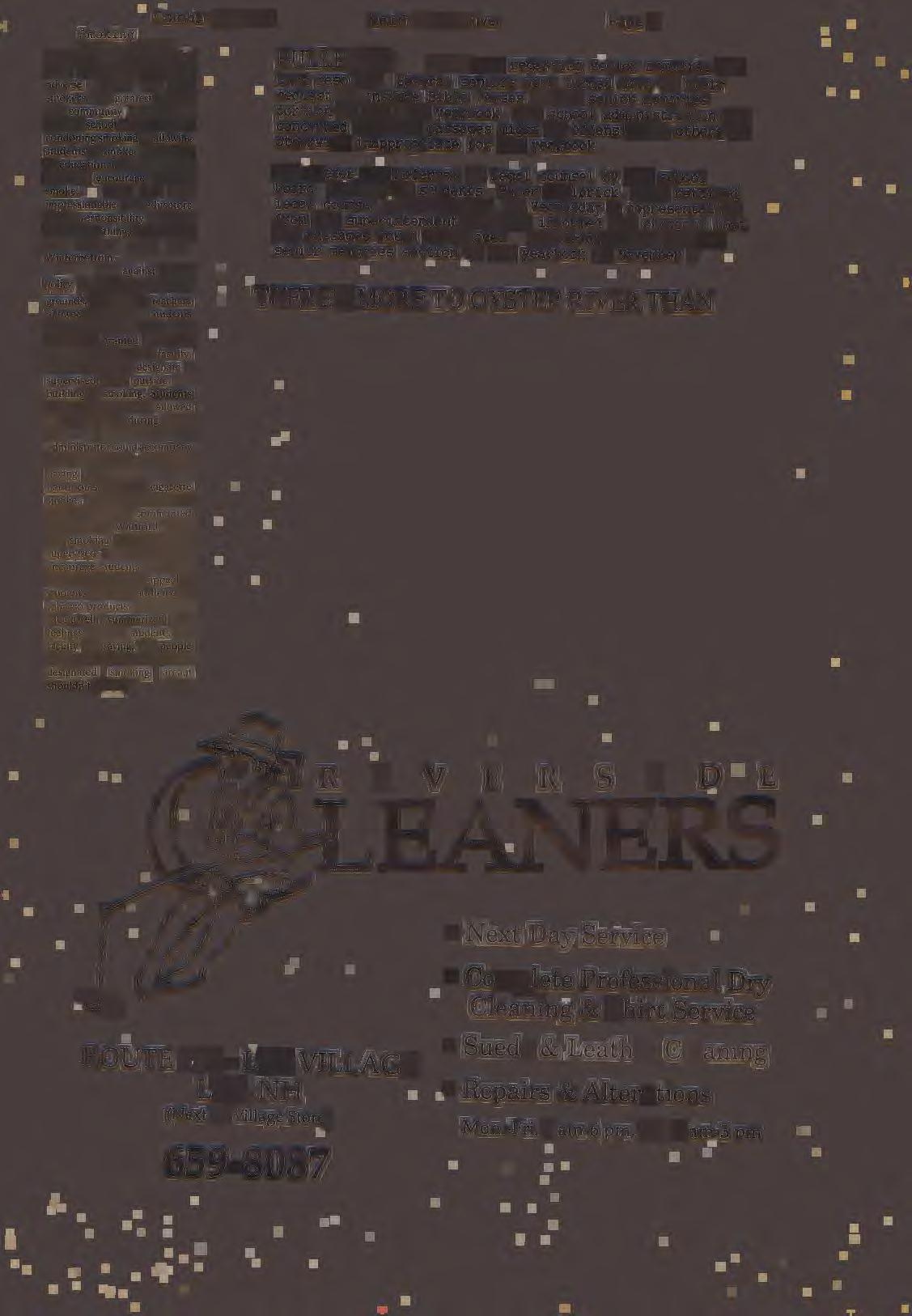 THERE'S MORE TO OYSTER RIVER THAN STUDY R I V ...,_E E R S I D ., E ER ....... • Next Day Service • Complete Professional Dry Cleaning & Shirt Service ROUTE 155 - LEE VILLAGE LEE, NH • Suede & Leather Cleaning • Repairs & Alterations (Next To Village Store) Mon ...:Fri. 7 am-6 pm, Sat. 8 am-3 pm :·•: !~