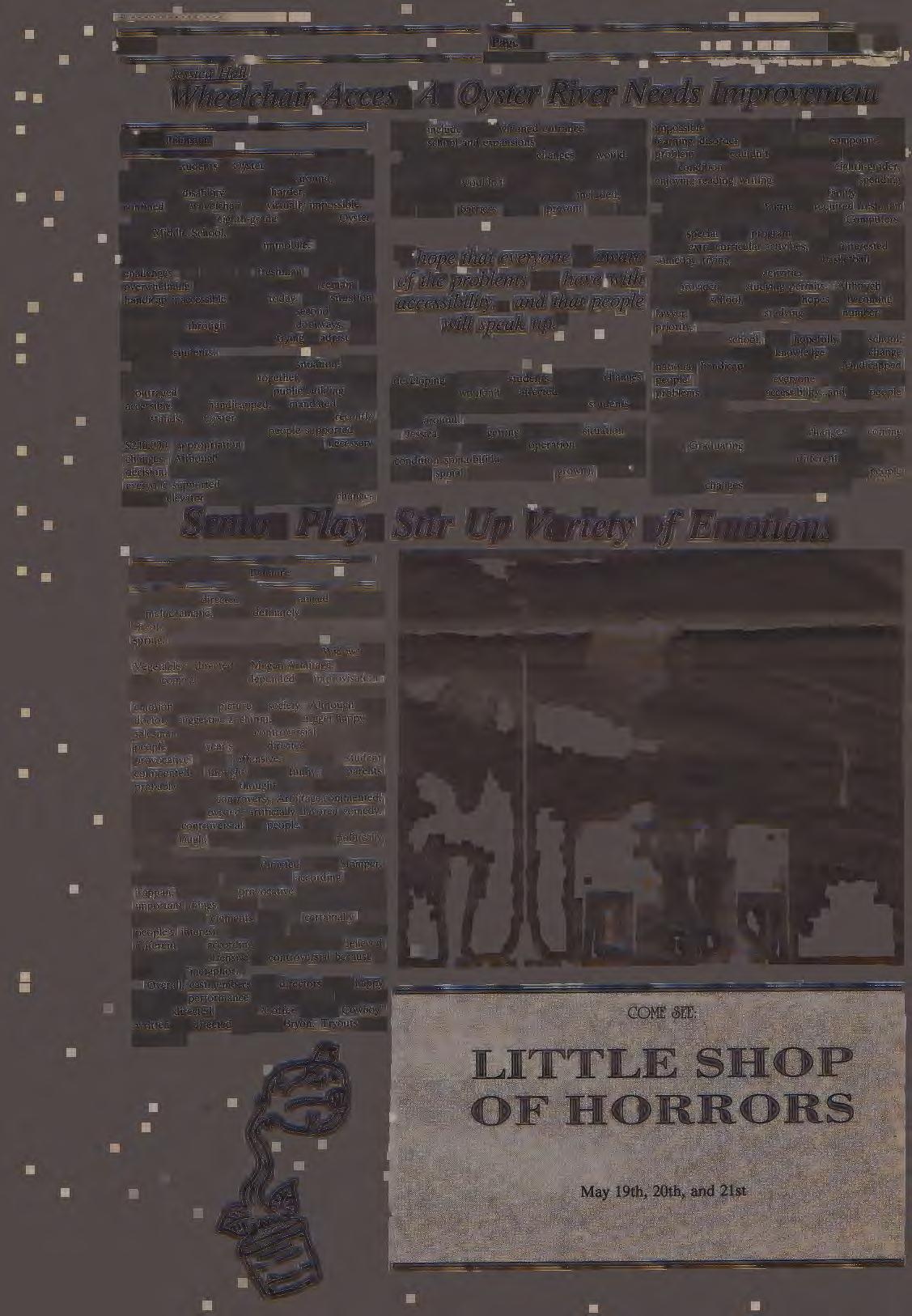 Beginning on March 10 and ending on the 18th, the Student Council held its annual Clam Slam Volleyball Tournament. Once again the program was a rousing success with some ten teams · participating, including a team fielded by the ORHS faculty. The winners of the tournament were: Sara Weidhaas, Stefany Shaheen, Jen Friel, Jill Shapiro, Scott Troxell, Darren Miller, Danny Gault, and Chris Jerard. Each received a gift certificate from "The Bagelry" or "The Licker Store" for their efforts.