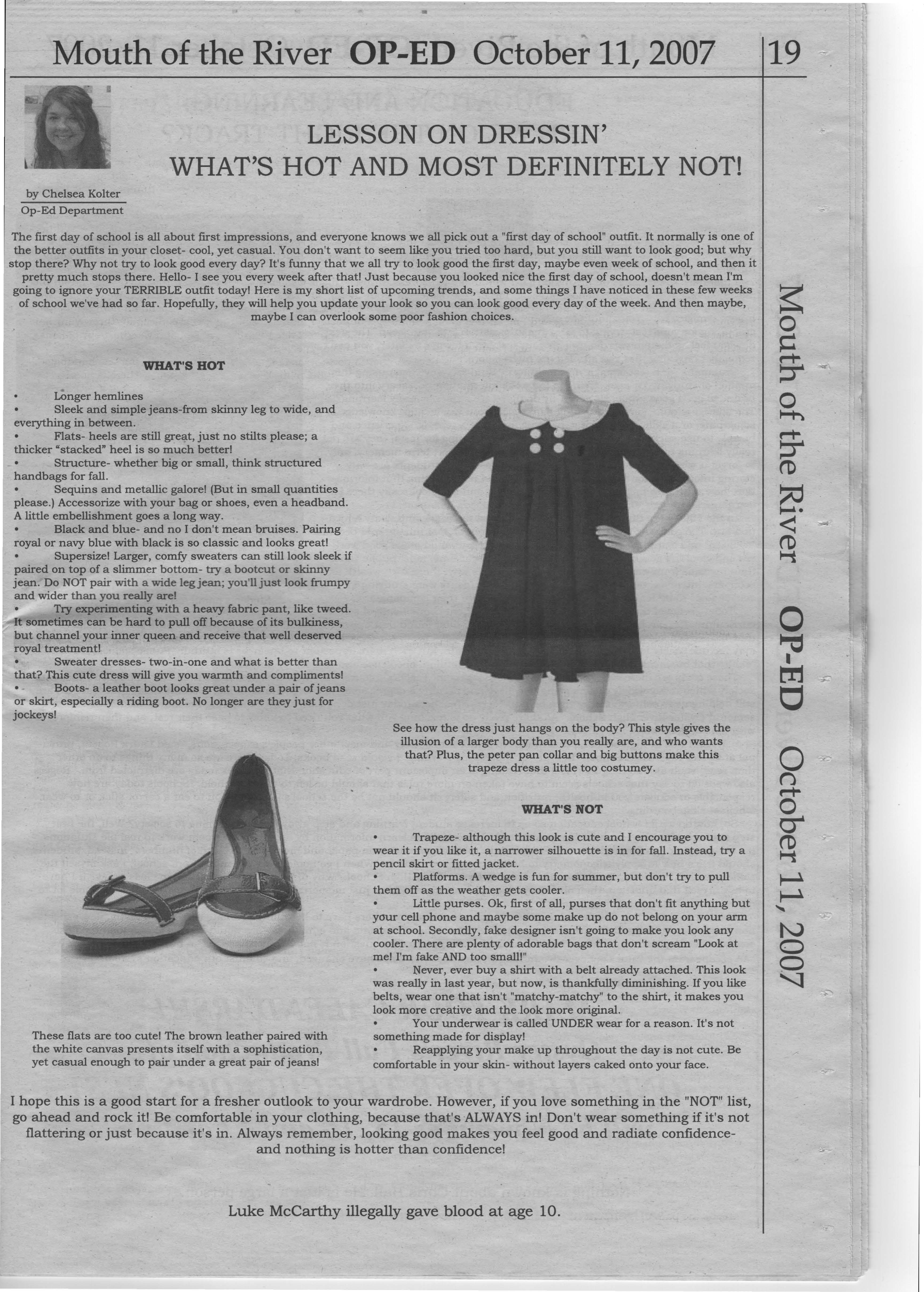 Many students agreed with Perkins. "They must get pretty hot in the summer wearing all that black," agreed Courtney Dennis, junior. "We only care what girls wear. I'd like to see less gangster people.