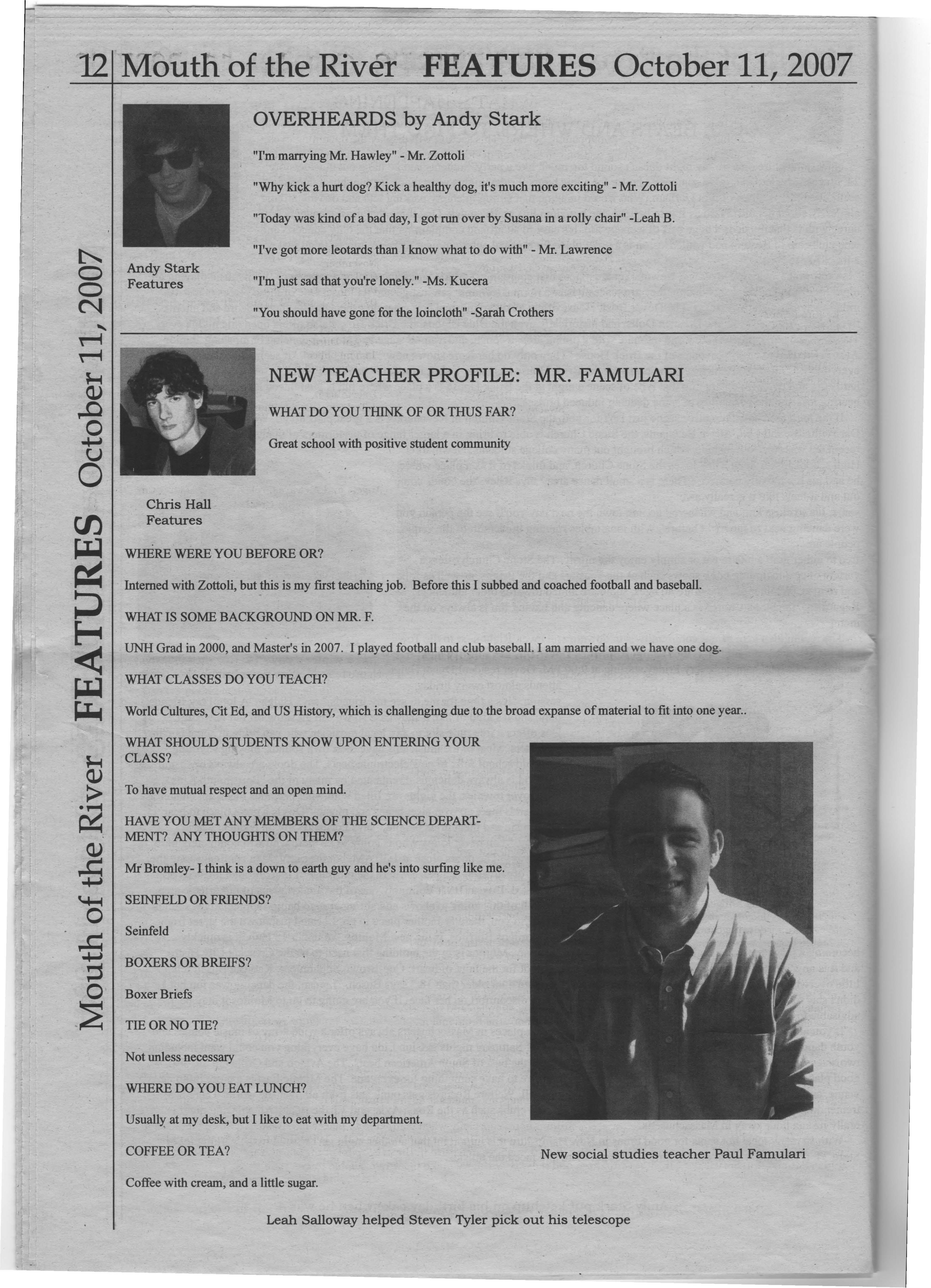 "I work at the physical therapy clinic and I really enjoy playing basketball and football," said Mike Feld, who is the Oyster River High School athletic trainer and a part time substitute.