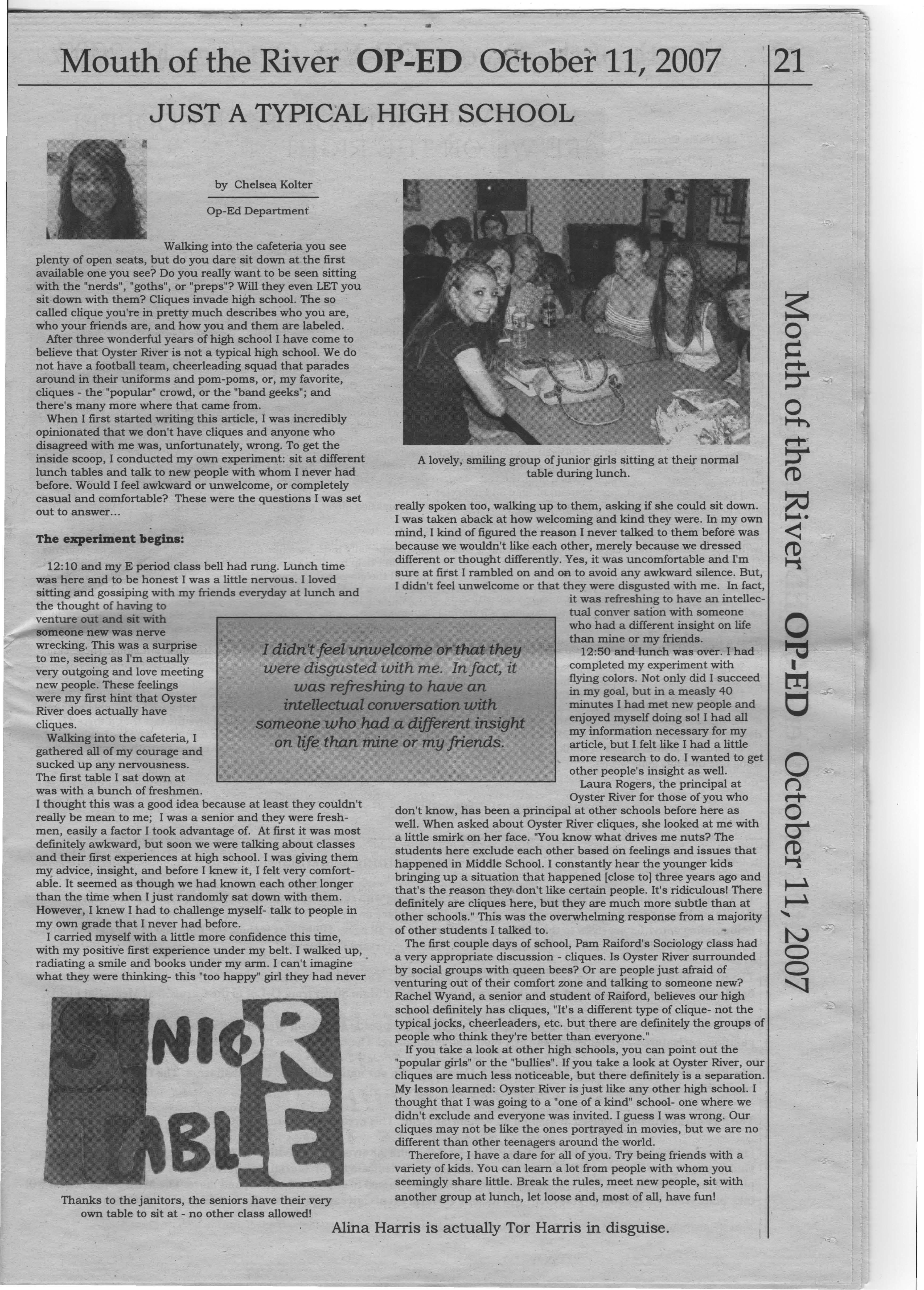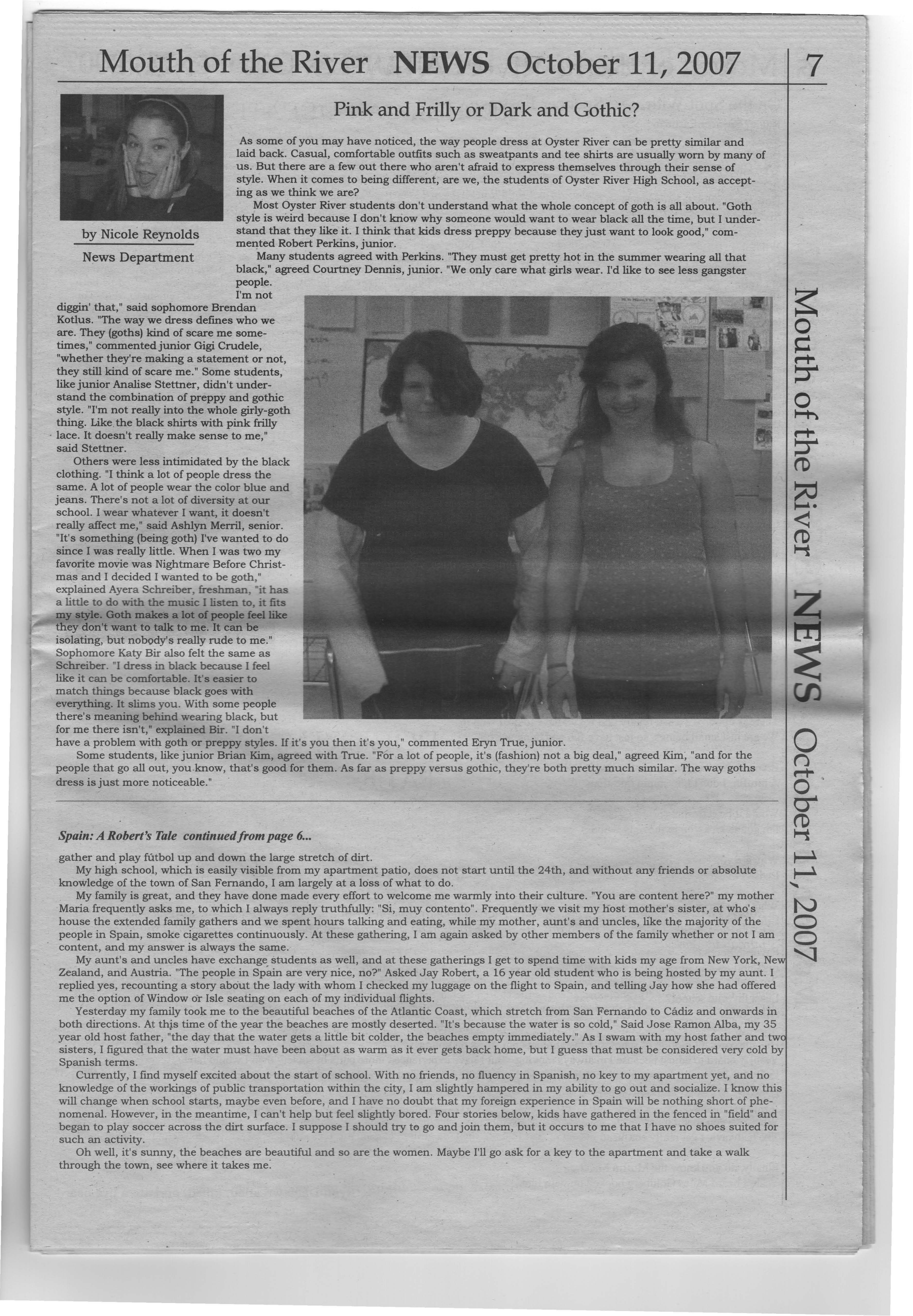 Most Oyster River students don't understand what the whole concept of goth is all about. "Goth style is weird because I don't kriow why someone would want to wear black all the time, but I underby Nicole Reynolds stand that they like it. I think that kids dress preppy because they just want to look good," commented Robert Perkins, junior. News Department
