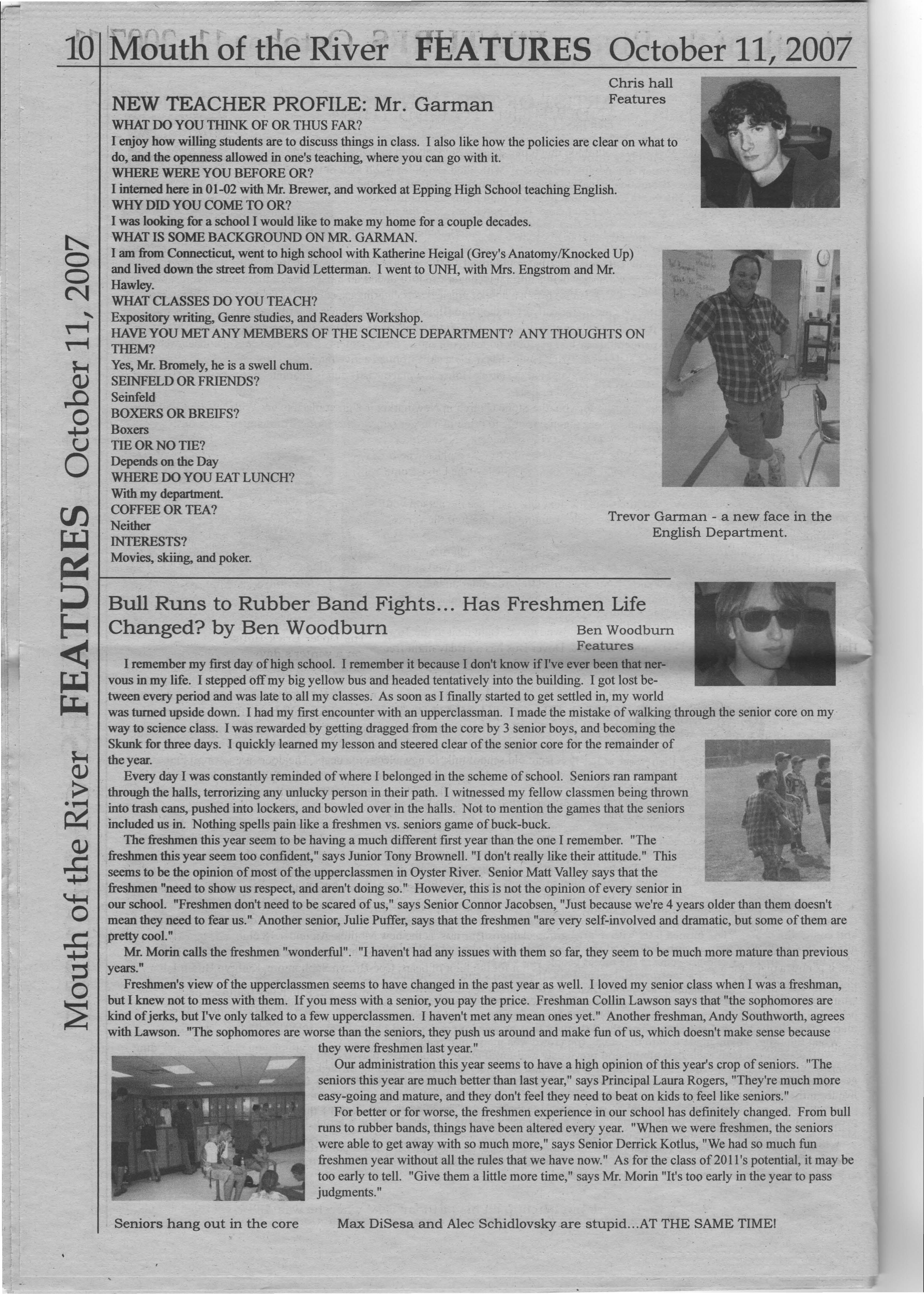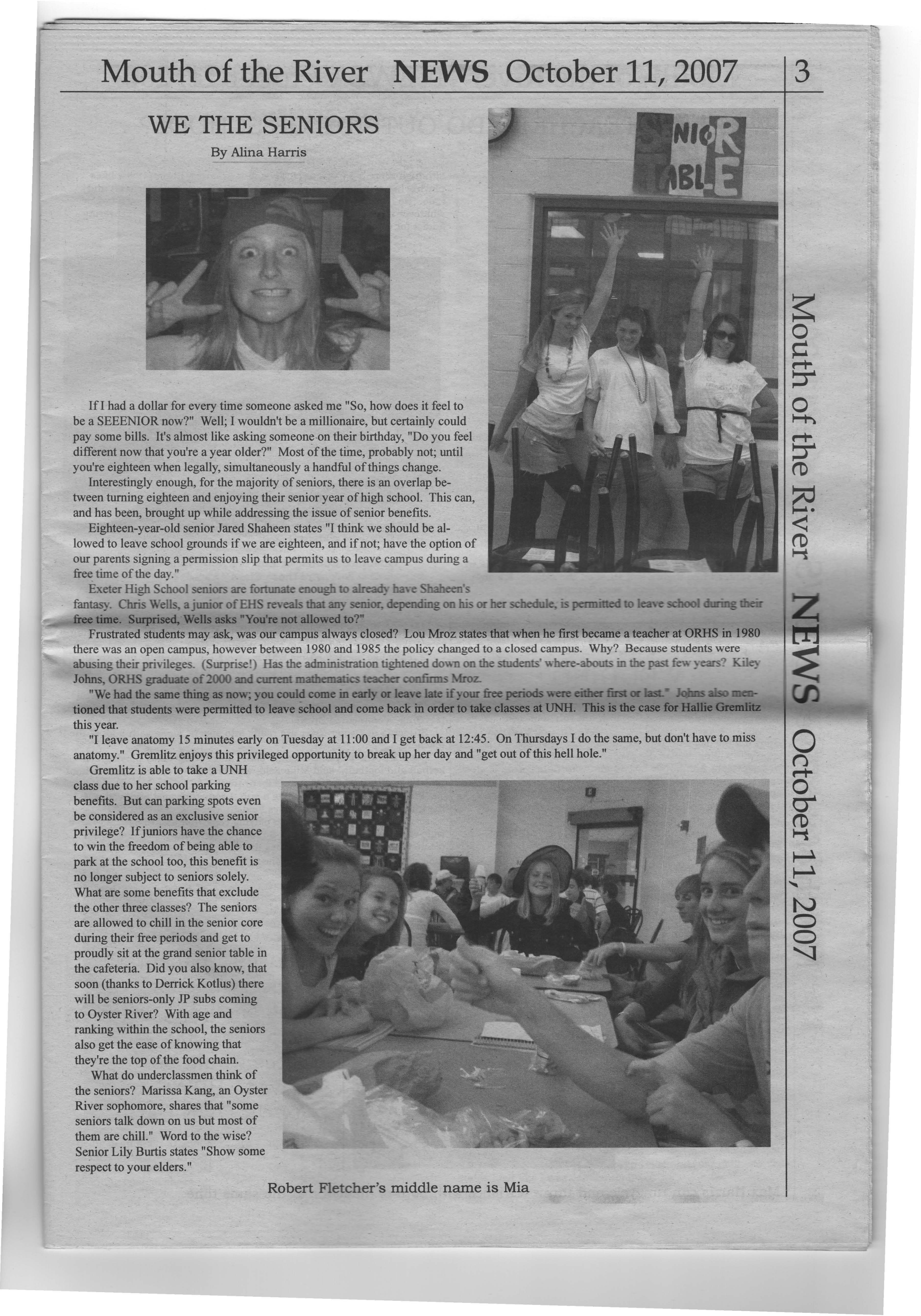 What do underclassmen think of the seniors? Marissa Kang, an Oyster River sophomore, shares that "some seniors talk down on us but most of them are chill." Word to the wise? Lily Burtis states "Show some respect to your elders."
