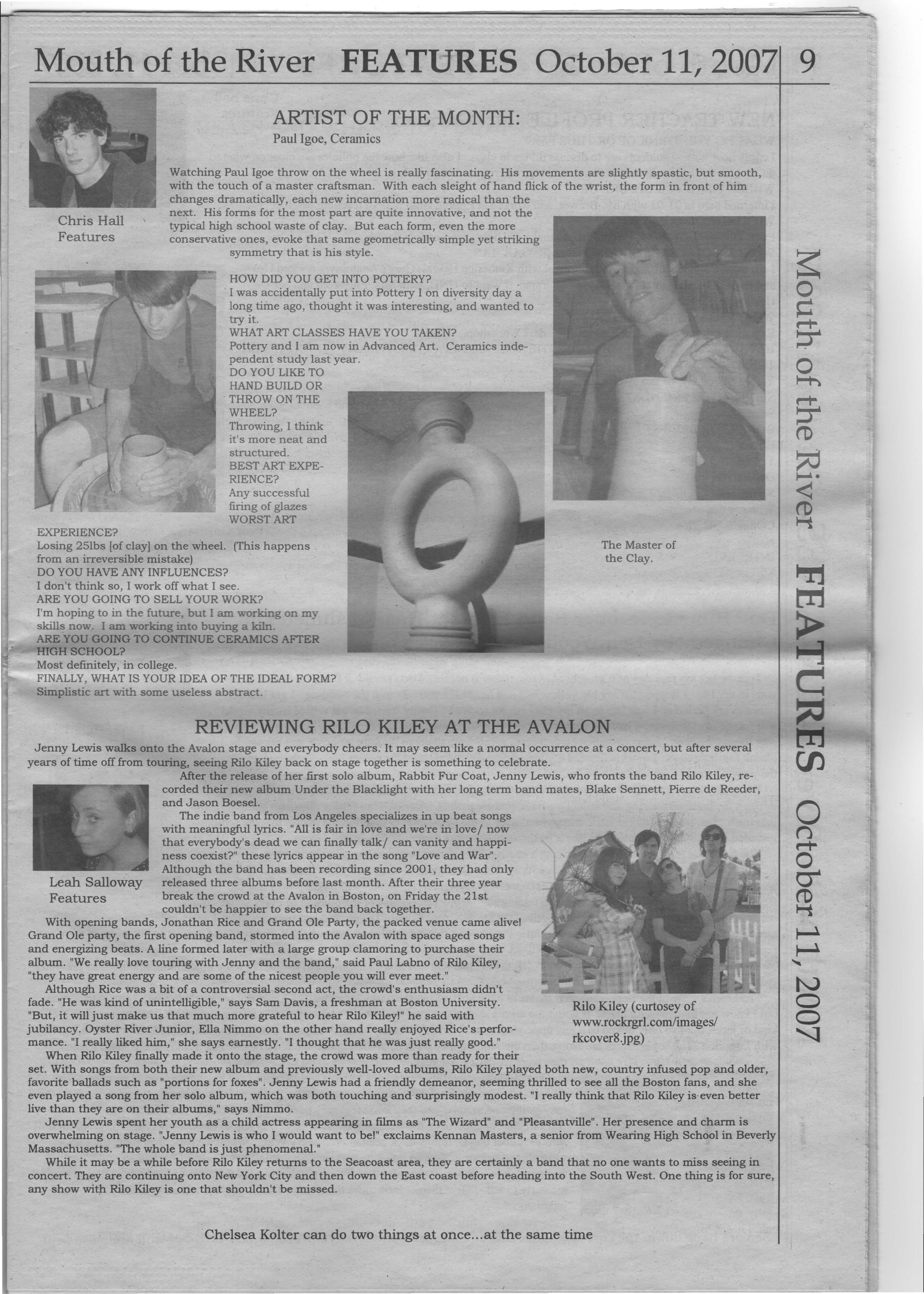 Has the constant motion of scholastic installments put stress on your system? Yeah, it's hard to adjust because I'm always moving. But I have experienced more parts of society than I would have in Oyster River. It's been a positive experience and has allowed me to feel more shakin' and bakin'/ movin' and groovin'.