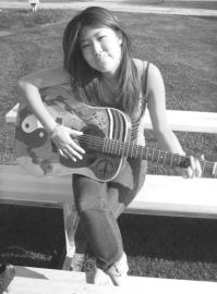 Junior Marisa Kang playing Mr. Herlihy’s guitar