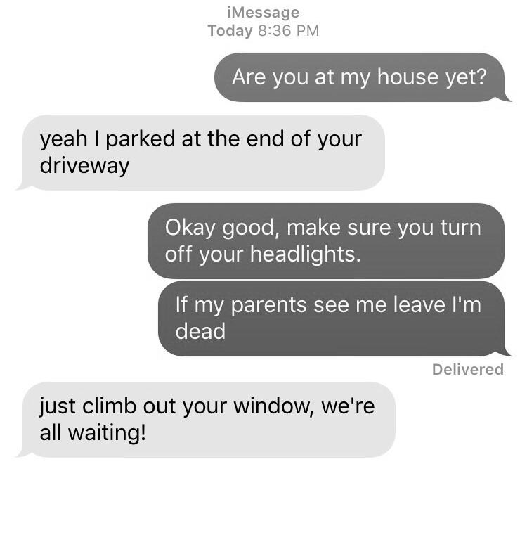 Hewaitsuntilit’sdark,maybe11or12atnight.Hehastomakesurehis parentsareasleep.Iftheyfindout,it’sover. “Makesureyourheadlights areoff,”hetextshisfriends.“Ican’tletmyparentsseemeleave.And don’tforgettowaitattheendofthedriveway.”Hepropsapillowupin hisbedandstuffssomeclothestomakeitlook‘realistic’.Hegrabshis shoesandopensuphisbedroomwindow.“I’mnotabadkid,”hethinks asheshovesthewindowscreenunderhisbed.“Ijustcan’tstandallthe pressure.”Heconsidersstayingin,notwantingtodisappointhisparents, buttheneedtonotmissoutdriveshimrightoutthewindow.