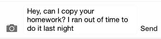 “I like to think I am an honest person and a good student but sometimes I will have so much homework and there’s just not enough hours in the day to do it all. So I will do the important stuff and then I will copy someone else’s work for assignments I couldn’t squeeze in,” says one student.