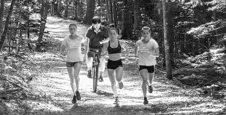 O’Brien and her husband chose to live in Durham specifically for the running community. “I could’ve lived anywhere but as a kid, I used to come over here for my long runs even though I lived in Dover. So even then I had a relationship with running in Durham,” she says. The town’s running community is exten sive. You can always find someone to run with regardless of age or ability. In Durham alone, there are the UNH teams, Oyster River teams, two outdoor and two indoor tracks, races such as the Homecoming race, Marina’s Miles, Bobcat Bolt, and many running trails such as College Woods, Powder Major, Kingman Farm, and the Sweet Trail. The running community also extends beyond people of college age. On Wednesdays at lunch, a group of adults run workouts on the UNH track. UNH Women’s Cross Country Head Coach, Robert Hoppler says, “I really admire the lunch bunch. They’re under recognized. These are the people that are creating a positive and welcoming community for running.”