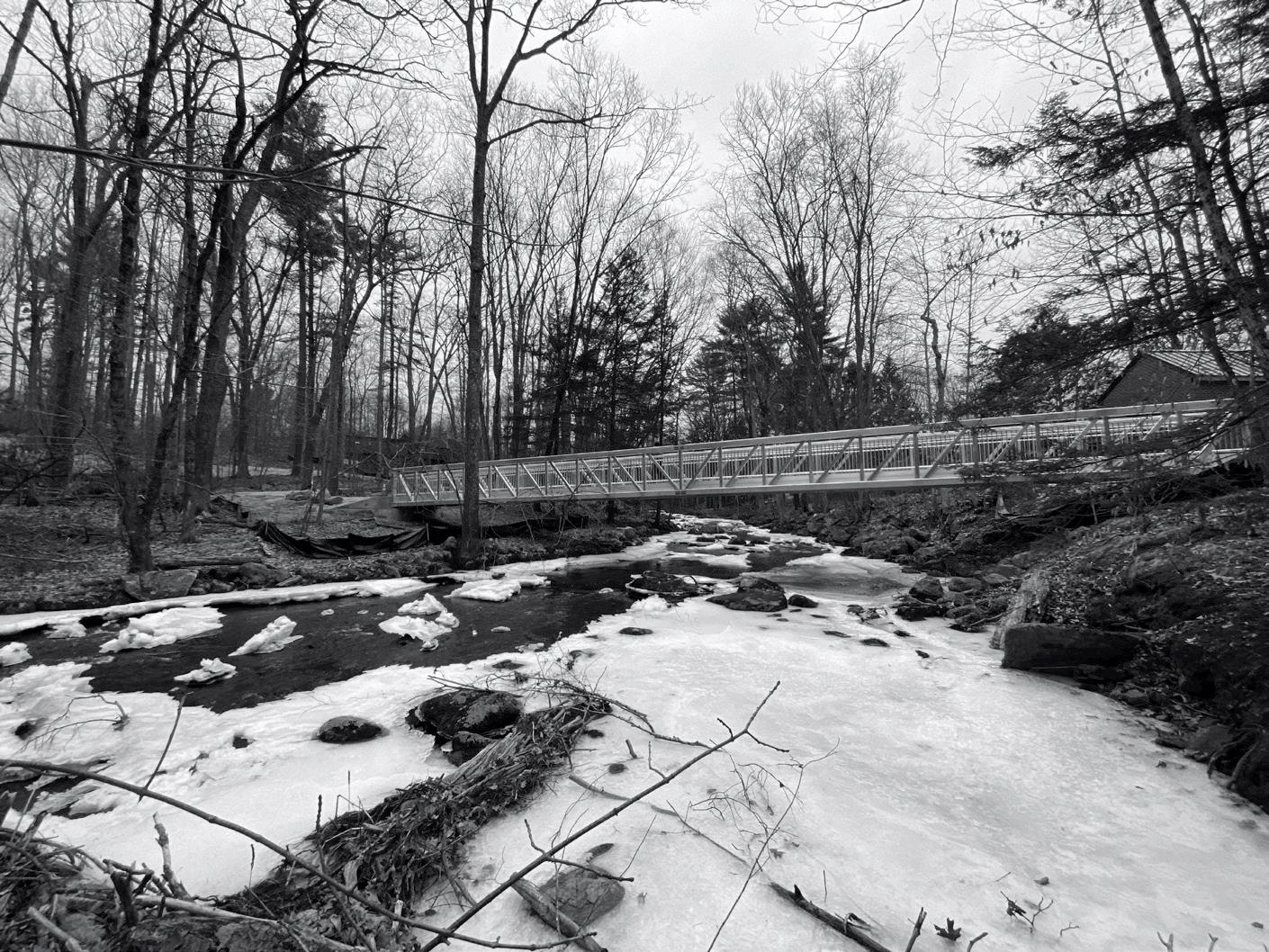According to the town of Durham website, “funds for the aluminum bridge and abutments, engineering, permits, and related costs are primarily from private donations and grants,