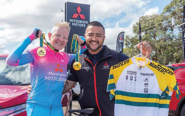 Geared up for victory: Julie Hooper pictured with supporter Jamie Neeamuthkhan, general manager at Mornington Mitsubishi. Picture: Gary Sissons Liz Bell Liz@mpnews.com.au