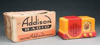 2667 - ADDISON MODEL 5 CATALIN RADIO IN RED & YELLOW 12 - 5/8” x 7” x 9”. C. 1940. Showing good color and shine, no cracks or repairs. Small stain on the top. No back panel or cord. Set is being sold as a “non-working” vintage electronic device that should be gone over by a qualified technician prior to operation. (Good). 700 - 2,000