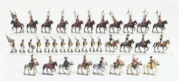 Each Box: 12” x 9” x 2”. (A) Ref. 134 Musique a Cheval du 1e Regiment de Lanciers. 1 bent plume. 6 pieces. (B) Ref. 132 Grenadiers Batallion Valaisan. Includes Mounted Officer, 2 Drummers, and 1 Flag-bearer. 13 pieces. 19 pieces total. (Excellent). 400 - 500