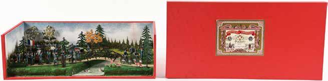 Box: 9 - 3/4” x 13 - 3/4” x 1 - 1/2”. Unusual. Original box has been wallpapered over. 12 pieces. (Excellent). 250 - 400