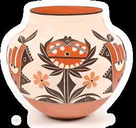 Incised on bottom “Ambrose Atencio Kewa Santo 2000 Domingo”. Inside with large bird and floral design, exterior with a band of negative and positive floral design.