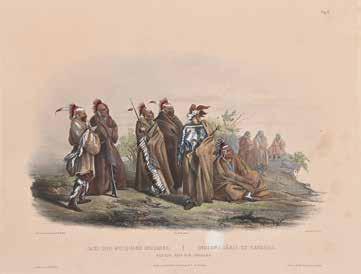 Saukie and Fox Indians aquatint engraving with original hand-coloring blind stamp lower-center margin “C. Bodmer” sight: 14-1/2” x 11” sheet: 21-1/2” x 17-1/4”