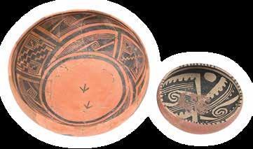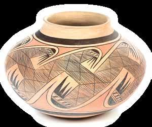 Incised on base “13 / Paulita Pachelo” and an image of a cornstalk. With inside filled by four bird designs and exterior with a band of negative circle designs. Polychrome. Hairline crack.