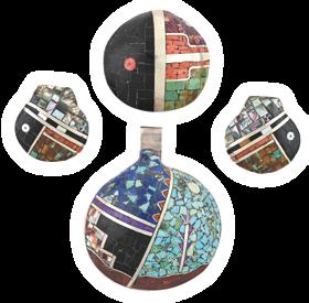(B) With fine line and bold geometric patterns, forming overall diamond pattern. 10” Dia. x 9” T.