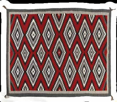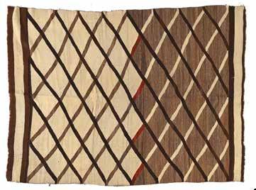 (C) Mid-20th century. Double-saddle blanket with overall banded pattern with small diamonds in each corner.