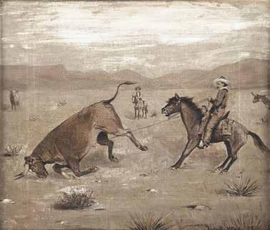 Cowboy Roping Steer oil on canvas signed lower-right “W.L.S. Wyo. ‘98” sight: 12” x 14” framed: 15-1/2” x 17-1/2”